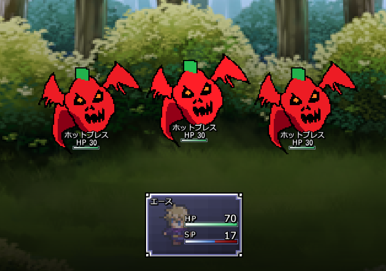 コモンイベントにするほどでもない小ネタイベントとか、そのうちまとめてみようかと思います。今考えているのはテレパシー、魔法生物(SPがなくなると戦闘不能になる)、リバース(ダメージと回復が反転する)、やどりぎのタネなどです