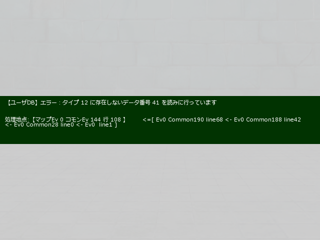 ver3.664にて、敵キャラ個体データ(UDBタイプ9)のみデータ50番を用意して、敵グループで登場させると、似たようなエラー表示ができるのは確認しました