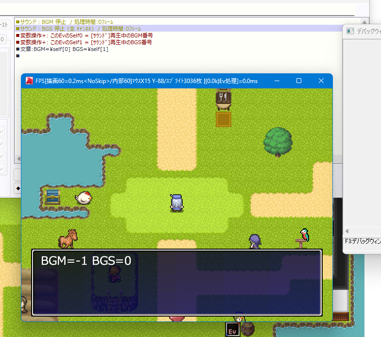 @「再生周波数:100%以外」でBGMを再生する(oggデータなど) ABGMを再生したままの状態でセーブする Bロードする Cロード直後、BGMが「周波数100%」の状態で再生される D続けて、再生周波数を指定して同じBGMを再生し直しても変化なし